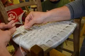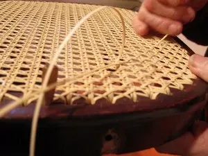 La procedura originale, invece, può essere ancor oggi eseguita artigianalmente in tutte le sue fasi: la tipica trama “bucherellata” viene intessuta a mano direttamente sulla seduta da impagliare ed intrecciata pazientemente filo per filo. Prima della lavorazione, la paglia viene trattata con acqua calda affinché diventi più duttile e maneggevole. Questa particolare fibra è ricavata dal giunco ed è ridotta in sottili listerelle caratterizzate da un’elevata resistenza. La sua superficie liscia si presta a moltissimi tipi di lavorazione e permette di ottenere una tessitura molto fine.